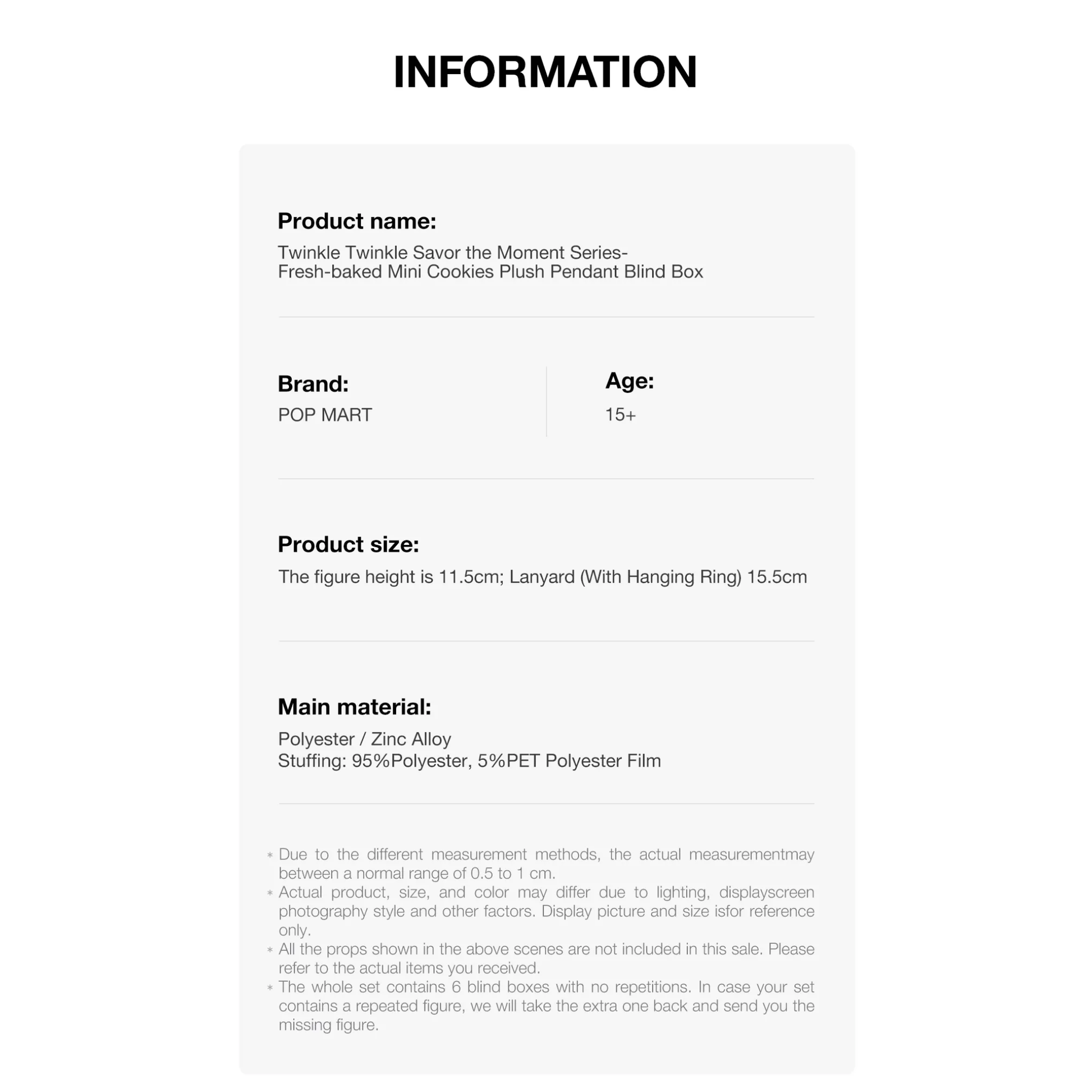 NOTE: Each single box has been opened solely to confirm the character inside. Complete set boxes and blind box remain unopened and sealed in their original packaging.